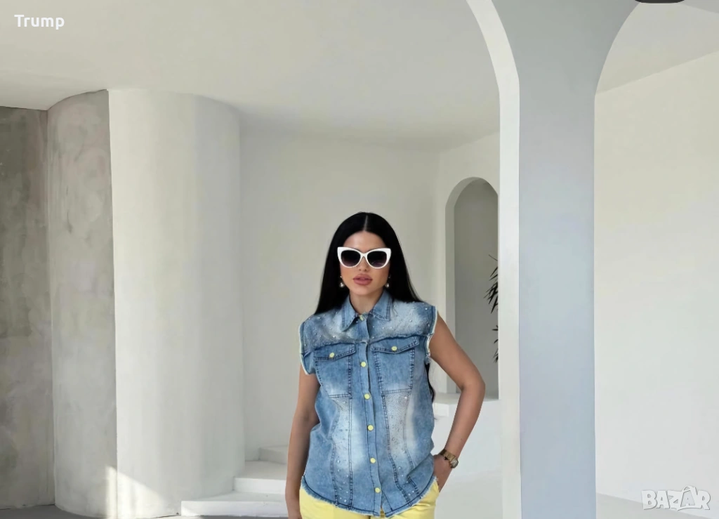 Ефектен комплект от елек деним и панталон жълт цвят, снимка 1 - Комплекти - 53931102 Ефектен комплект от елек деним и панталон жълт цвят, снимка 2 - Комплекти - 53931102 Ефектен комплект от елек деним и панталон жълт цвят, снимка 3 - Комплекти - 53931102 Ефектен комплект от елек деним и панталон жълт цвят, снимка 4 - Комплекти - 53931102 Ефектен комплект от елек деним и панталон жълт цвят, снимка 5 - Комплекти - 53931102 1/5