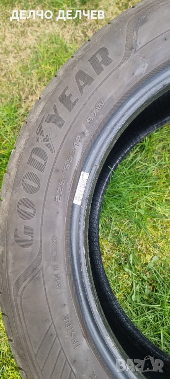 Продавам комплект употребявани зимни гуми Goodyer 225X55X17. ДОТ-10/21г. Подходящи за летния сезон. Намират се в добро състояние , състояние на грайфер 6мм гумите са равномерно износени без балони цепнатини и ремонти свалени са от личния ми автомобил, Съхранявани в гараж и готови за монтаж намират се в гр. Пловдив
