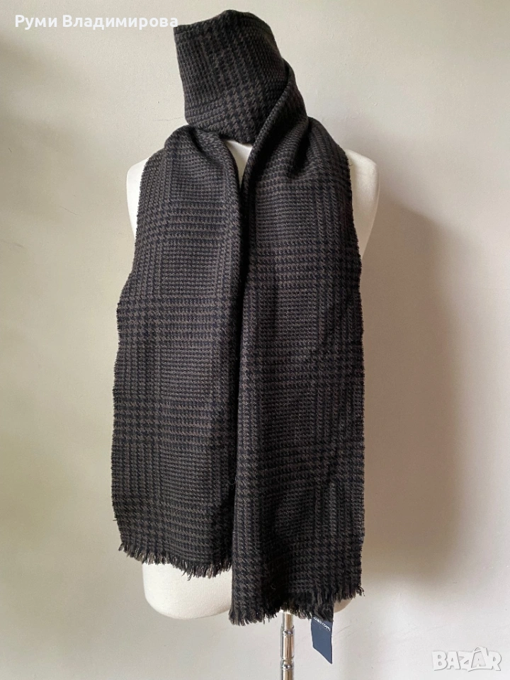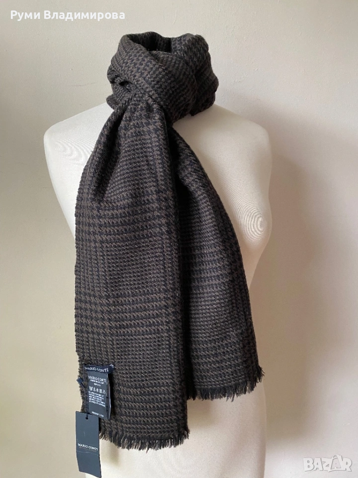 Мъжки, кариран шал Mario Conti от 100 % вълна, с етикет, каре в черно и кафяво, мек и топъл шал, доставка с Еконт.