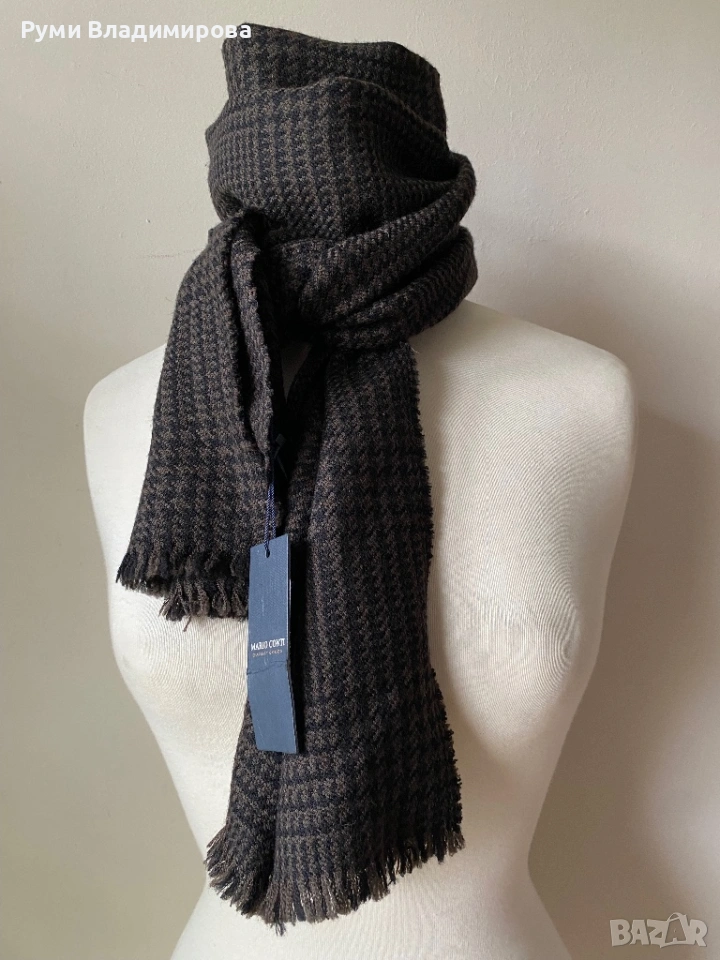 Мъжки, кариран шал Mario Conti от 100 % вълна, с етикет → Обява 53931302
