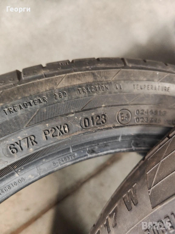 2бр.Continental,225/45/17 , ДОТ 0123 , 6.1mm грайфер, цената е за 2бр . Гумите са перфектни, без забележки, проверени са машинно за кривини, балони!! Разполагаме с всякакъв размер нова и втора употреба гуми от 14-22 цола за автомобил, джип и бус.