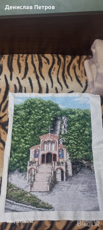Гоблен на кръстат бот, шит с конци "Ариадна" размерът е 35.5-47 см.
