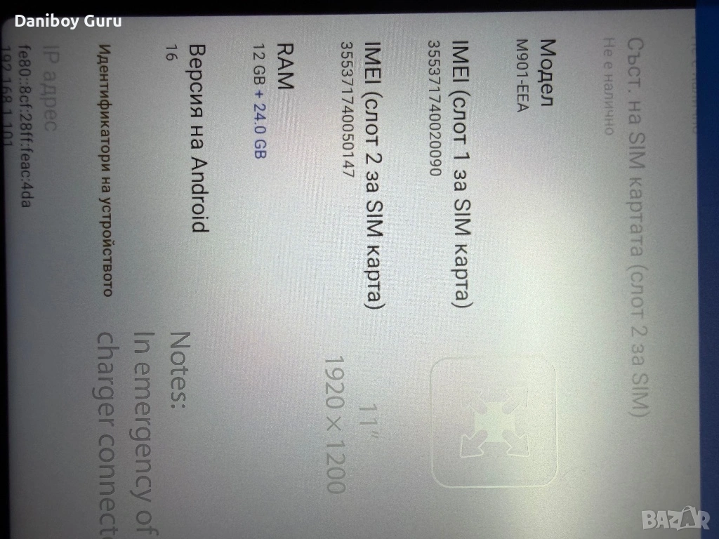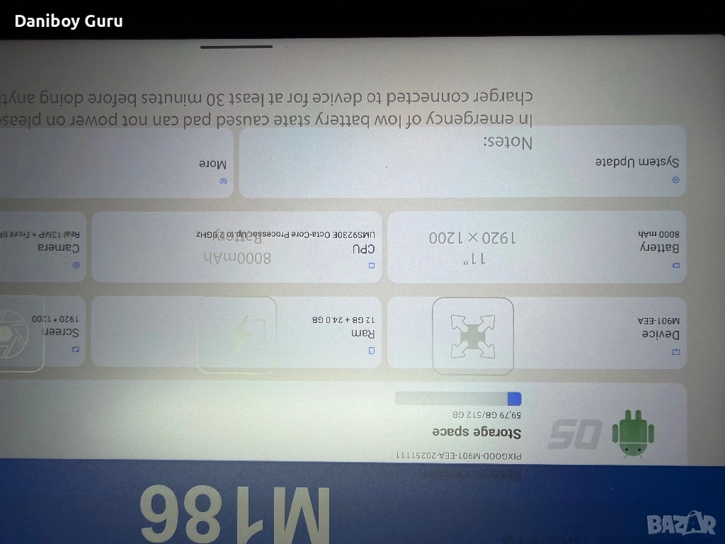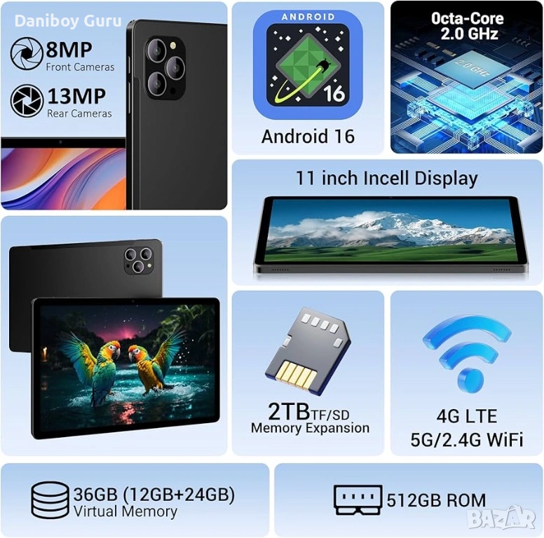 11” Android 16 таблет Octa Core, 36GB RAM + 512GB ROM 4G LTE/5G WiFi, Gemini AI, GPS, Face ID,