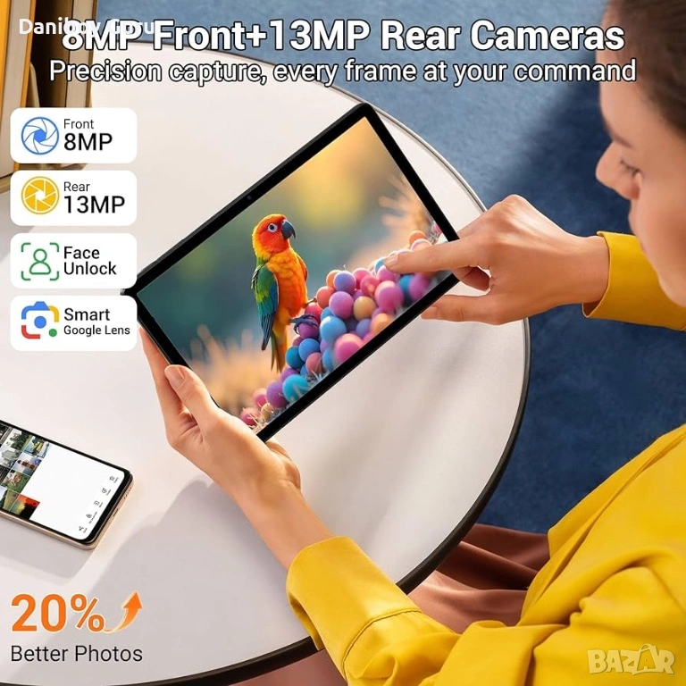 【11-инчов FHD дисплей + 13MP + 8MP камера】11-инчовият FHD екран осигурява ясни и широкоъгълни изображения за страхотно изживяване, независимо дали четете, играете или гледате филми или телевизионно съдържание. Комбинацията от 13MP основна камера и 8MP вторична камера не само поддържа HD фотография, но и осигурява по-ясно изображение по време на видео разговори за по-плавна комуникация.