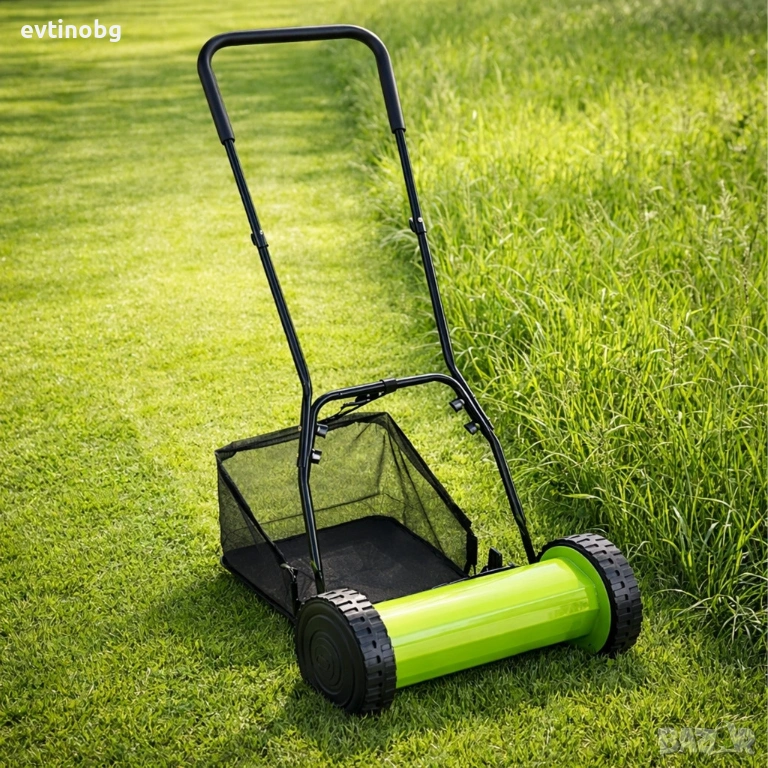 Ръчна косачка за трева с кош 40 см (16"), 5 остриета, регулируема височина 17–33 мм – Тиха, екологич → Обява 53931486