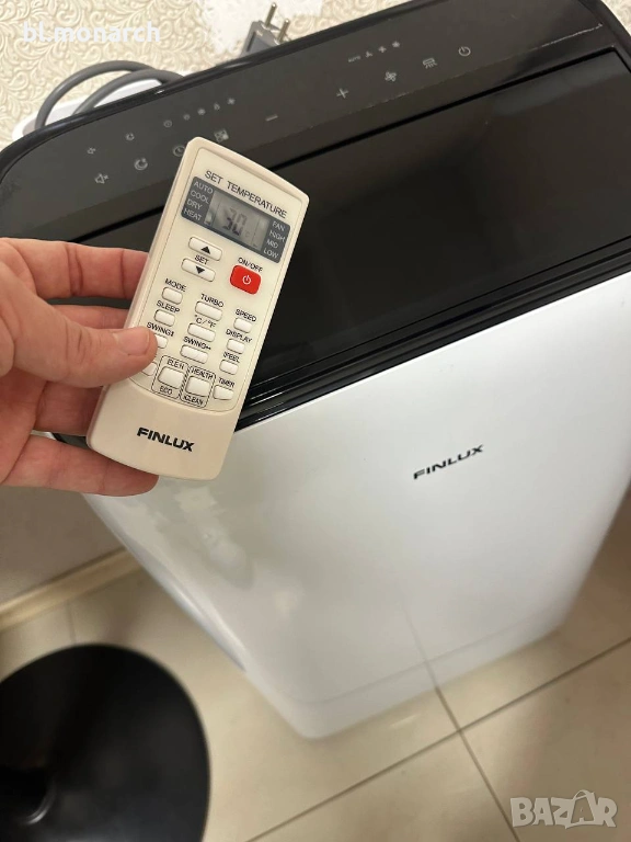 Finlux MIA12HOT. Уредът е на практика чисто нов – използван е по-малко от 1 месец и е в активна гаранция! Това е отлично решение, ако сте под наем, не искате да дупчите стени за монтаж на стандартен климатик или имате нужда от уред, който лесно да местите от стая в стая. За разлика от много други мобилни климатици, този модел има функция както за изстудяване, така и за затопляне, което го прави полезен през цялата година.