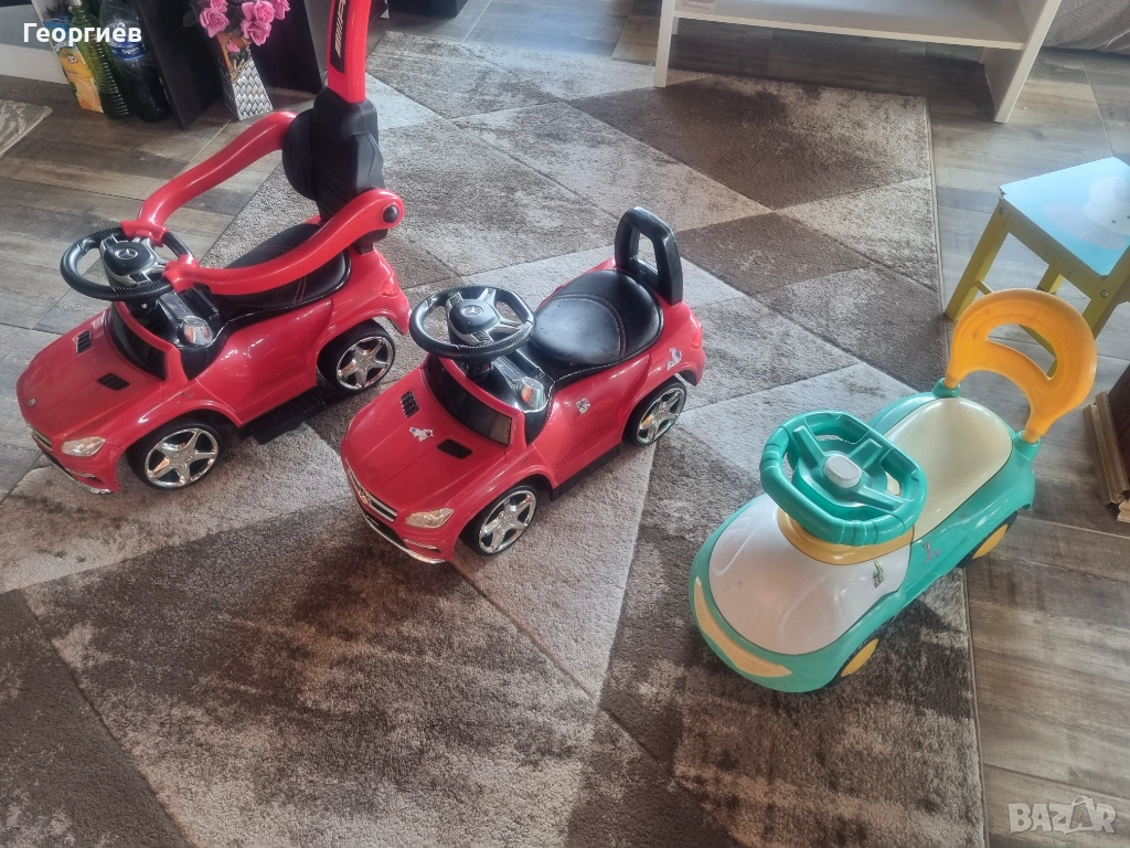 Продавам 3 броя детски коли за бутане и яздене.