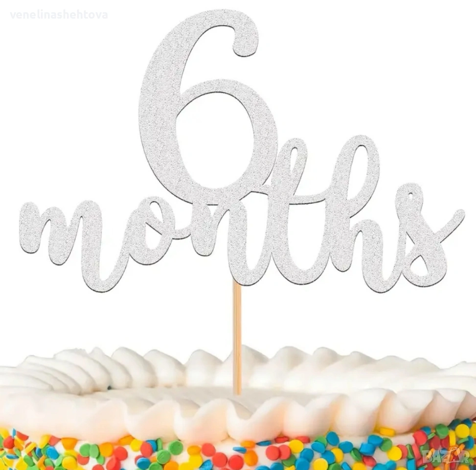 6 months месеца сребрист брокатен топер за половин година на бебешко парти → Обява 53931645