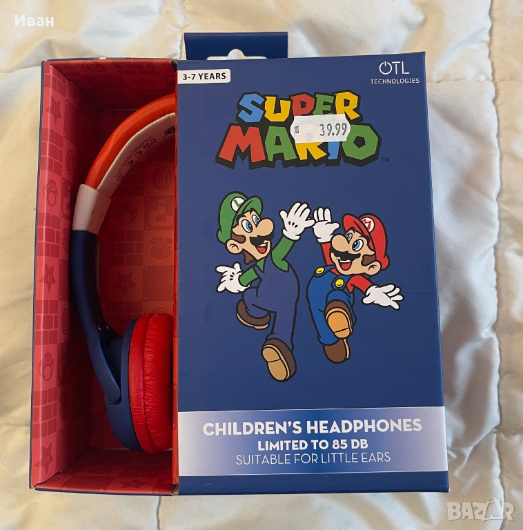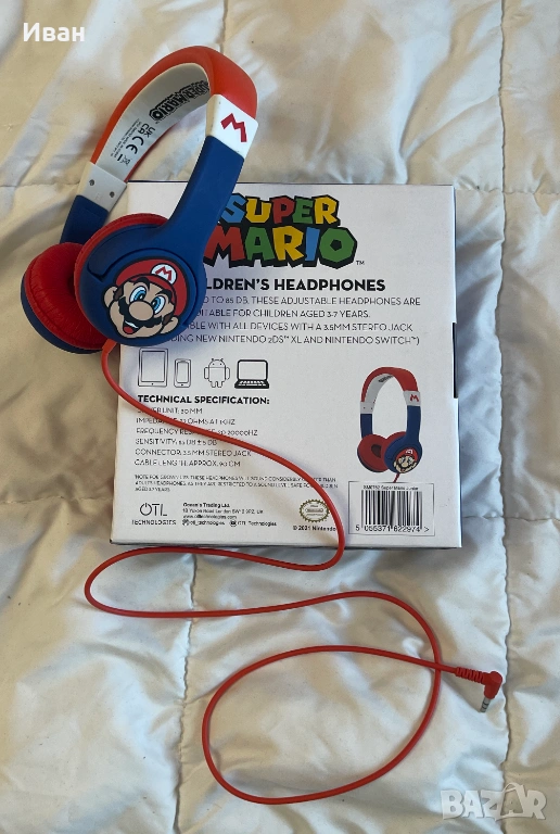 Продавам оригинални детски слушалки Nintendo (Super Mario дизайн), чисто нови – подарък, не са използвани.