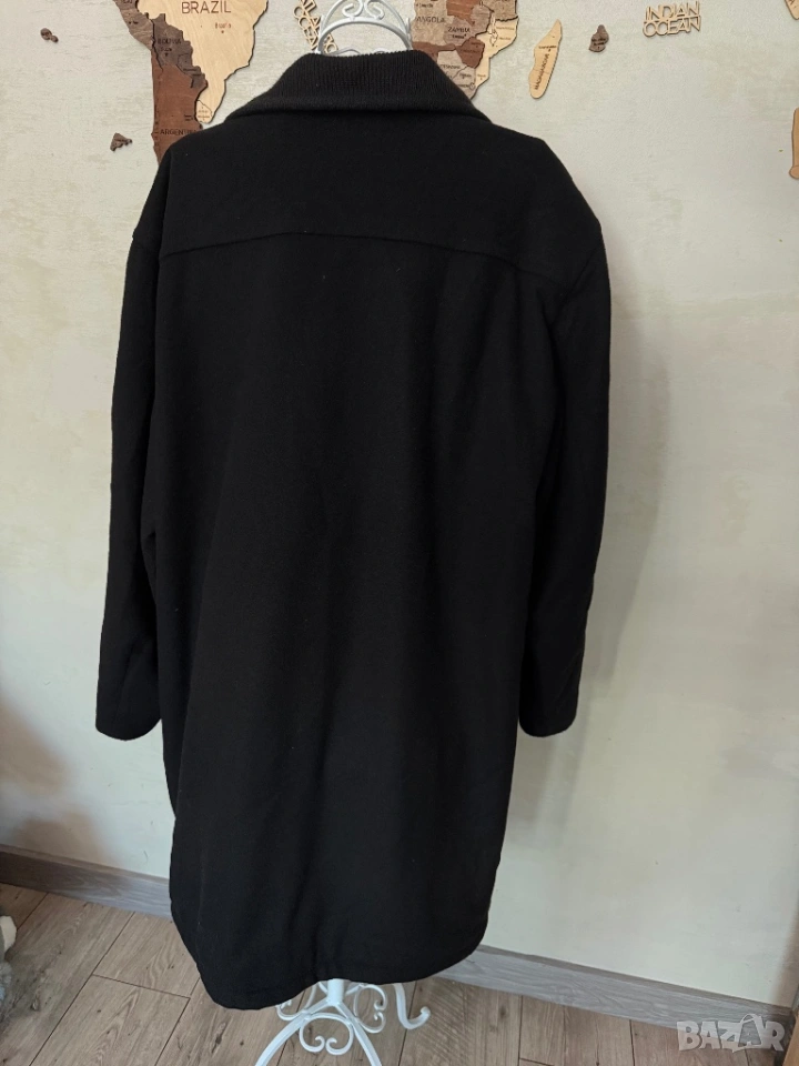 от вълна и кашмир в черен цвят. Стилно и удобно за студените дни. Дълго,изчистено,с много джобове