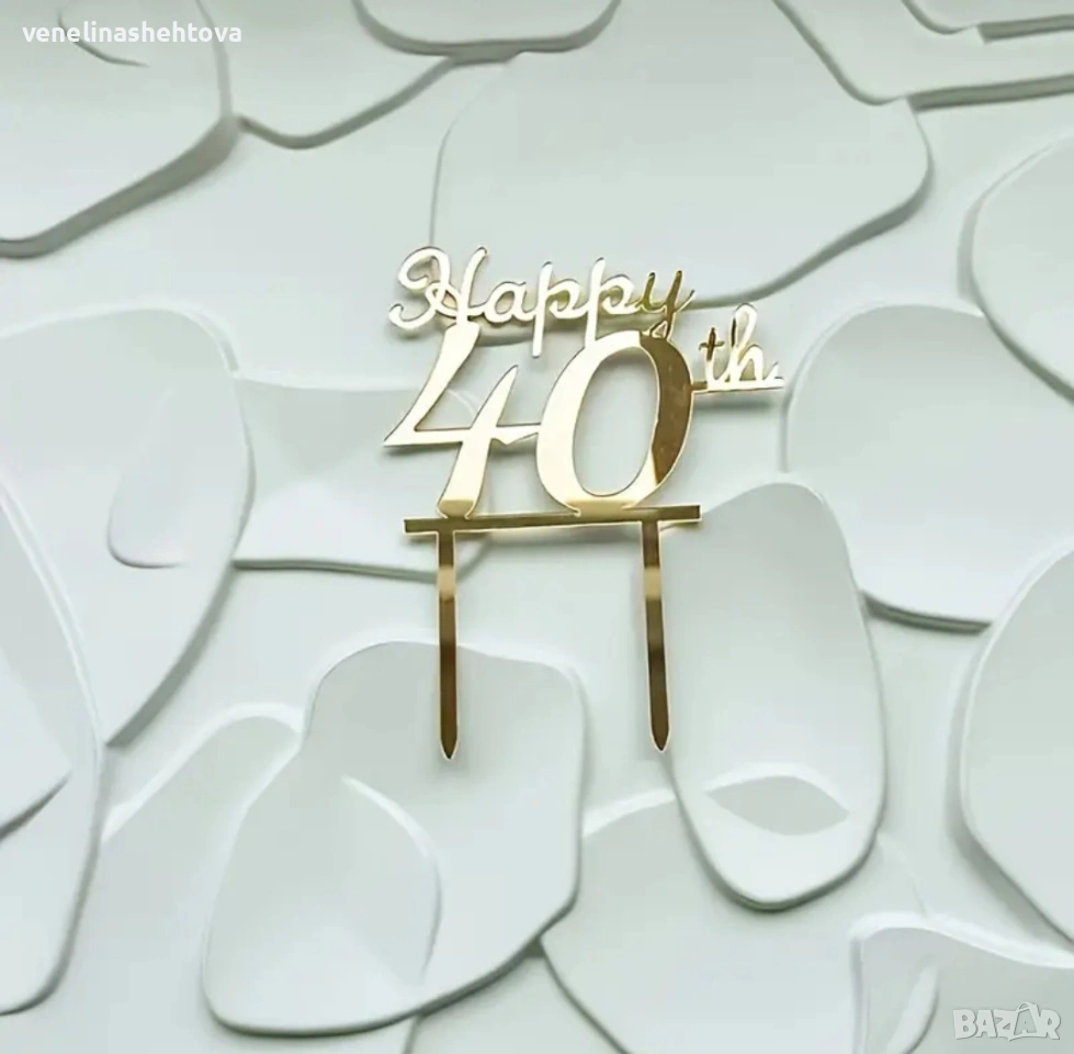 40-th Happy 40 годишнина златист акрилен топер забучване за декорация на торта → Обява 53932310