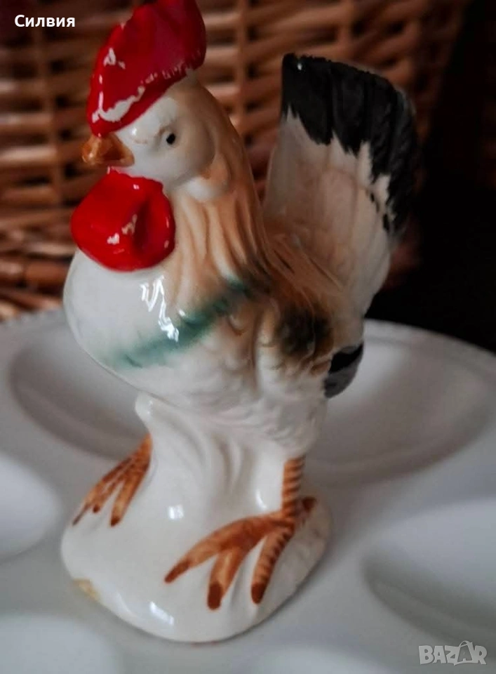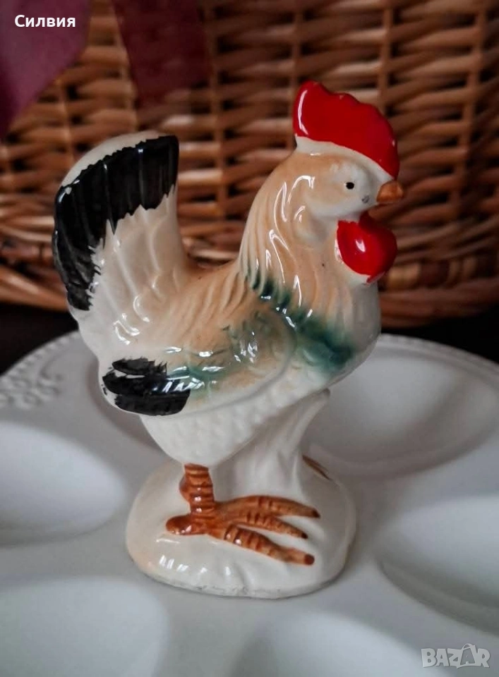 Залепила съм този красив петльо да служи като дръжка. Той е ретро фигура от керамика(Майолика)