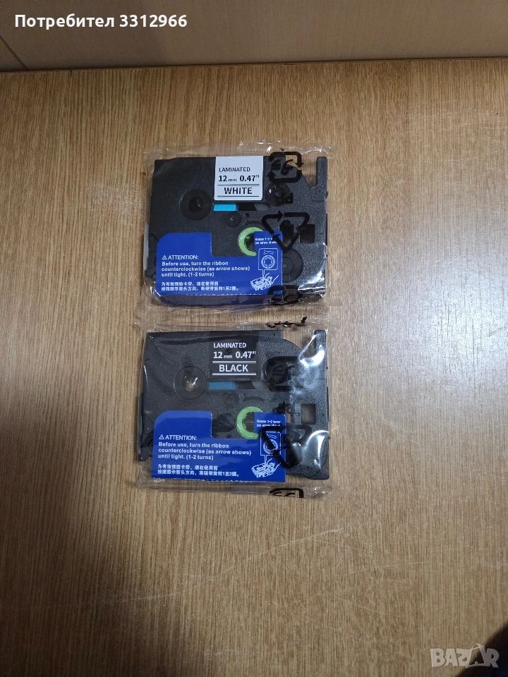 Чисто нови касети с ламинирана лента за етикетиращи принтери, съвместими с устройствата от серията Brother P-touch. Тип лента: Ламинирана, устойчива на вода, слънчева светлина, химикали и екстремни температури. Размери: Ширина 12 мм (0.47 инча). Цветове: Комплектът включва бяла и черна лента.