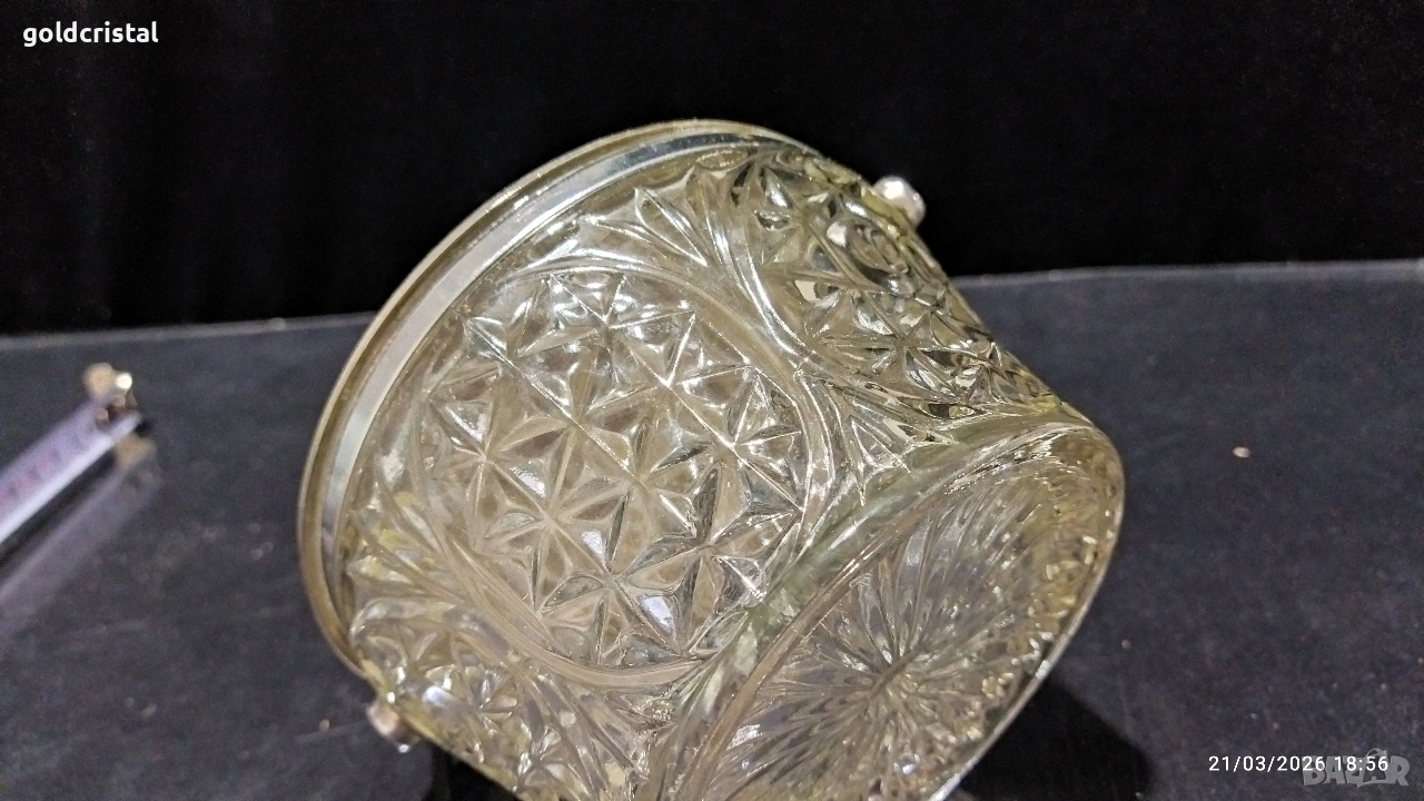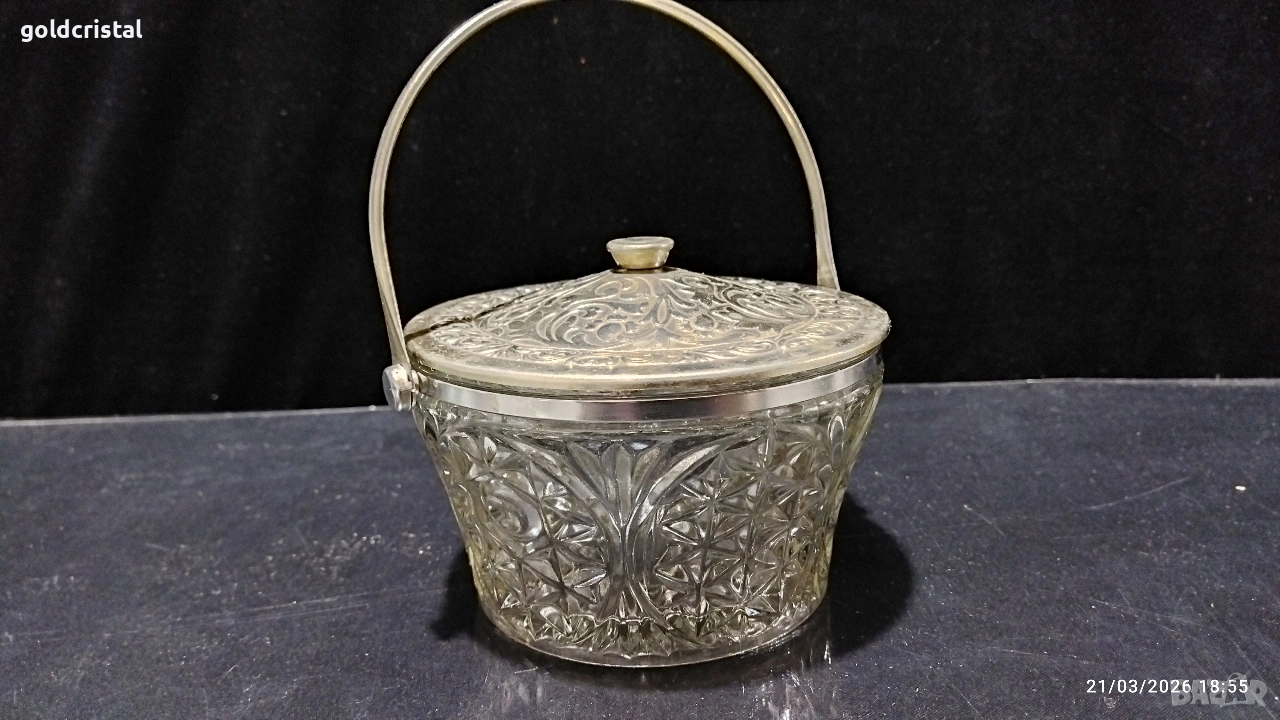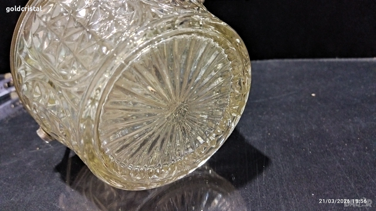 стара руска стъклена кристална заханица с метален капак и дръжка без забележки сервиз комплект сет лот ретро арт декор винтидж колекция стари старинни антикварни предмети обзавеждане за дома и семейството подходящи за подарък за ценители и колекционери