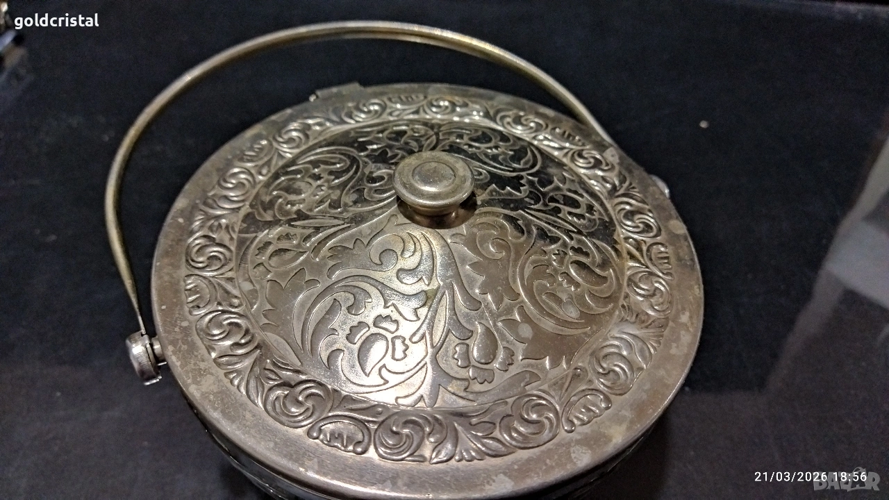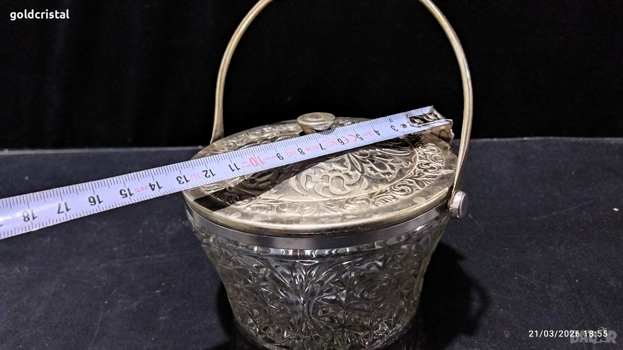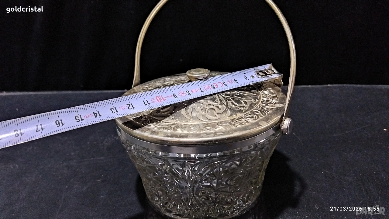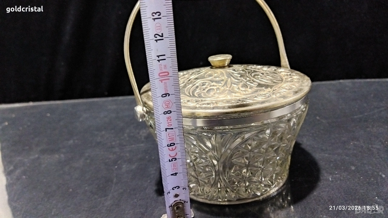 стара руска стъклена кристална заханица с метален капак и дръжка без забележки сервиз комплект сет лот ретро арт декор винтидж колекция стари старинни антикварни предмети обзавеждане за дома и семейството подходящи за подарък за ценители и колекционери