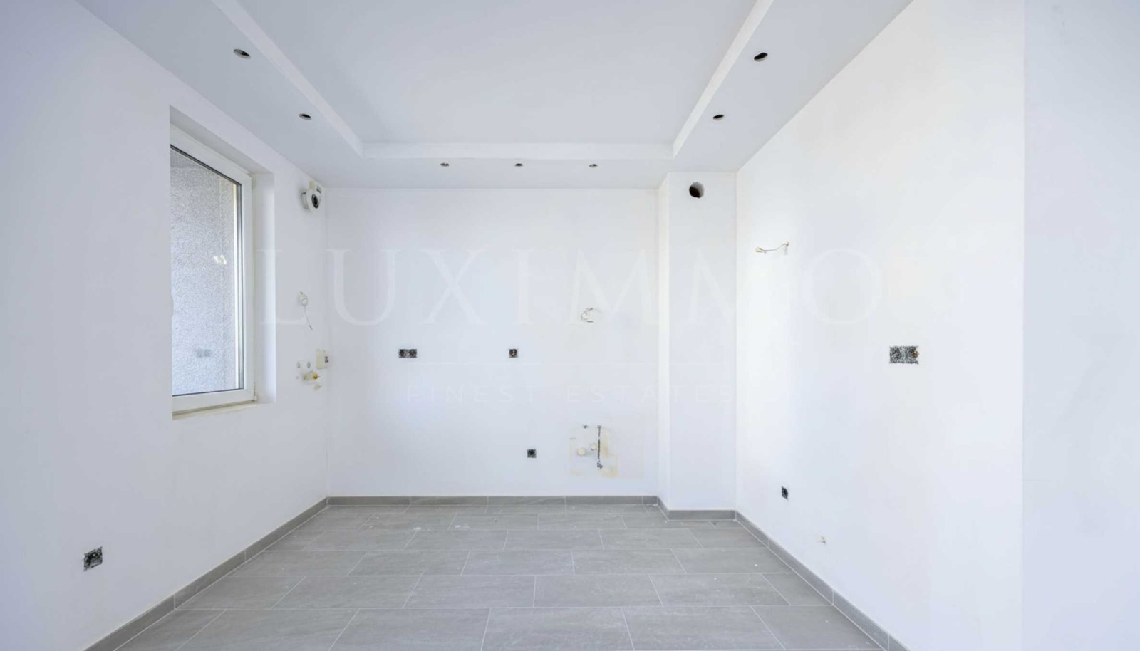 Апартаментът се предлага частично завършен, с монтирани плочи в банята и тоалетната и готови тавани. Отоплението и топлата вода са решени на газ, което осигурява ефективност и ниски разходи.