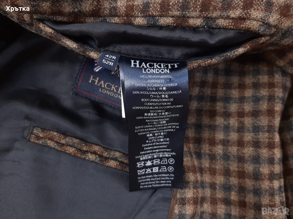 Платът е специално изтъкан в Англия ексклузивно за Hackett London, което гарантира автентичност и висок клас изработка.
