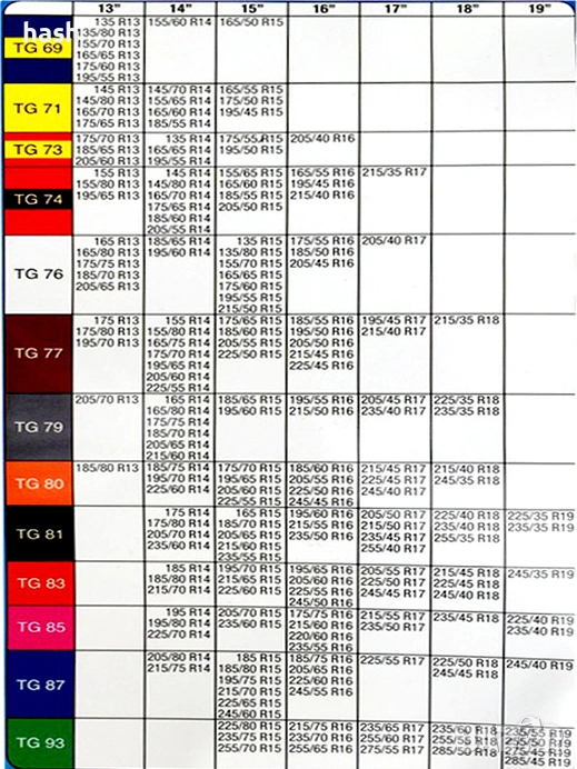 185 R15, 185/80 R15, 195/75 R15, 215/70 R15, 225/65 R15, 245/60 R15,