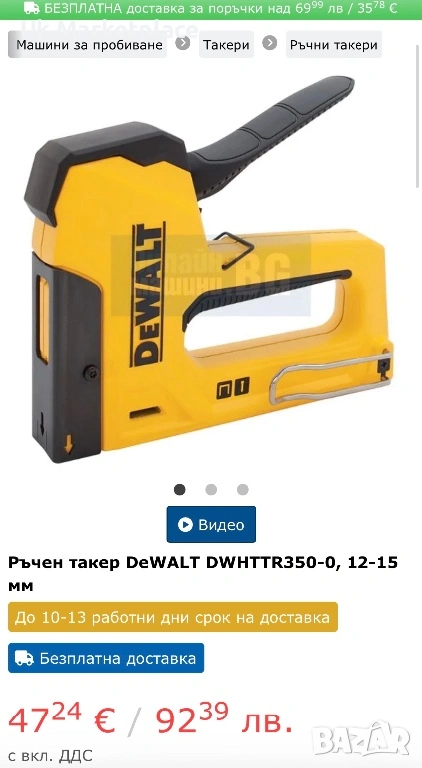 Ръчен такер DeWALT DWHTTR350-0, 12-15 мм → Обява 53933500