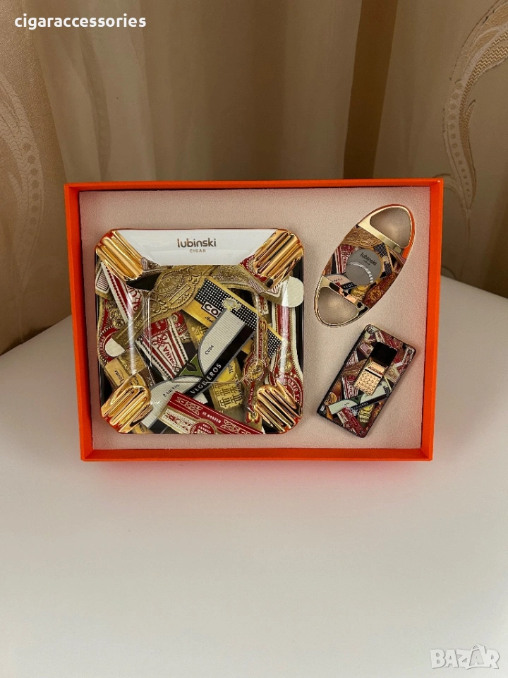 подаръчен комплект за пури, аксесоари за пури, запалка за пури, резачка за пури, ножица за пури, пепелник за пури, cigar set, cigar lighter, cigar cutter, cigar ashtray, подарък за мъж, луксозен подарък, комплект за пури