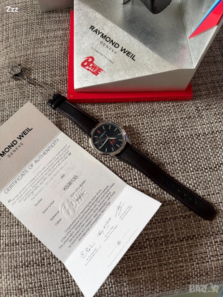 Пускам за продажба часовник специално за феновете на David Bowie. Референция 2731-STC-BOW01. Това е лимитиран, автоматичен мъжки часовник от швейцарската марка Raymond Weil, част от серията Freelancer и посветен на легендарния музикант Дейвид Боуи