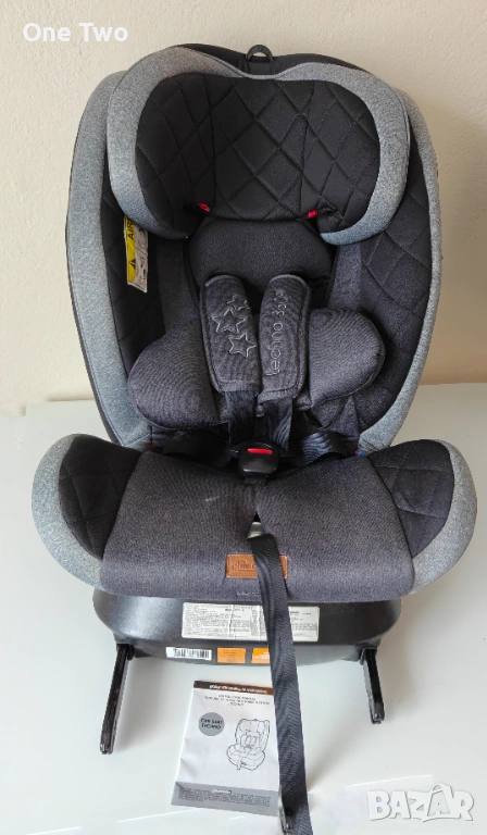 Ротация на 360 градуса: Седалката се върти върху основата си, което позволява изключително лесно поставяне и закопчаване на детето (обръщате го към вратата на колата), както и смяна на посоката на движение без демонтаж.
