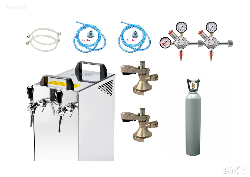 нов охладител за бира Kontakt 40 за 2 кранчета, пълен комплект, включително бутилка газ за 8 литра и