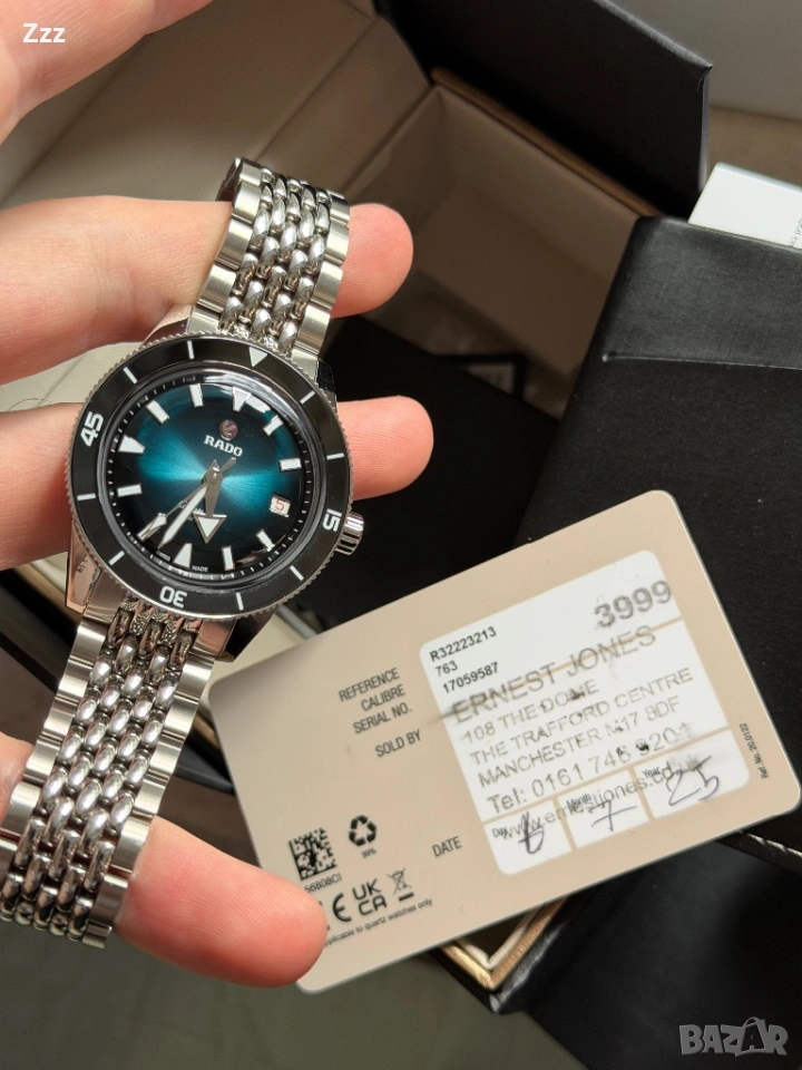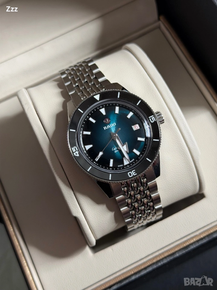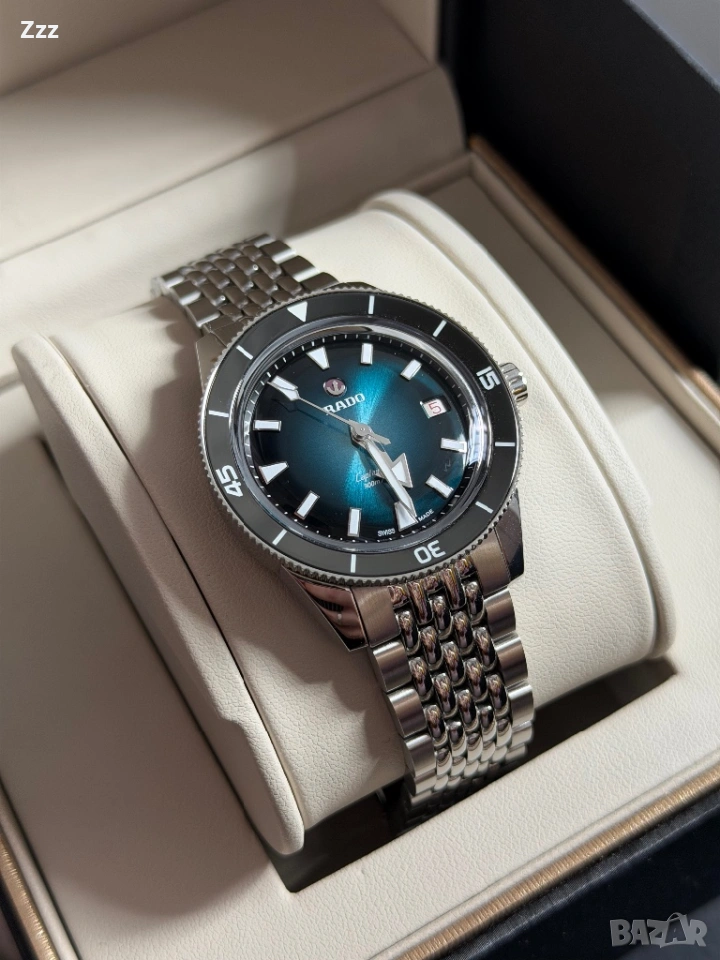 Продава се часовник Rado Captain Cook 39mm R32223213. Изискан, стилен и подходящ за всеки повод. Стилен аксесоар, който допълва вашия облик. Перфектен за мъжете, които ценят качеството и елегантността. Часовникът е като нов от магазина без нито една следа от употреба. Купуван е на 06/07/2025 г от Англия от магазин за часовници Ernest Jones. Механизъм R763 с 80 часа енергиен резерв. Има 5 годишна международна гаранция валидна до 06/07/2030г. Пълен комплект с кутия, допълнителни звена, Rado кърпичка и попълнена гаранционна карта. Топ цена-1750€. Намира се в Бургас. Бартери НЕ правя.