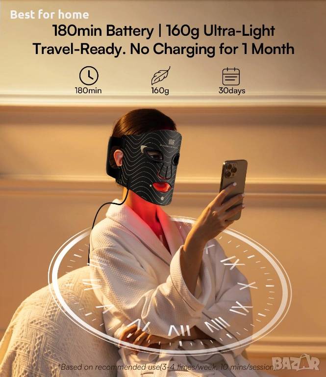 Безопасна, неинвазивна грижа за кожата – по всяко време, навсякъде: LED маската с червена светлина осигурява светлинна терапия със салонно качество у дома – без болка, раздразнение или време за възстановяване. Използвайте я от 3 до 7 пъти седмично в продължение на 10 до 30 минути на сесия. Проектирана за комфорт и резултати, тя е вашият надежден и щадящ кожата спътник за постигане на младежка, здравословна кожа със собствено темпо.