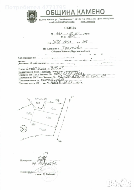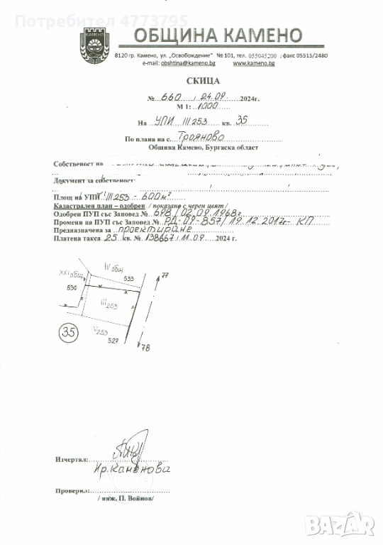 Имаме удоволствието да ви представим една наистина изгодна и атрактивна оферта - два отлични урегулирани поземлени имота (УПИ) с площ от 800 кв.м и 600 кв.м, разположени в с. Трояново, община Камено, област Бургас - само на 30 км от гр. Бургас.
