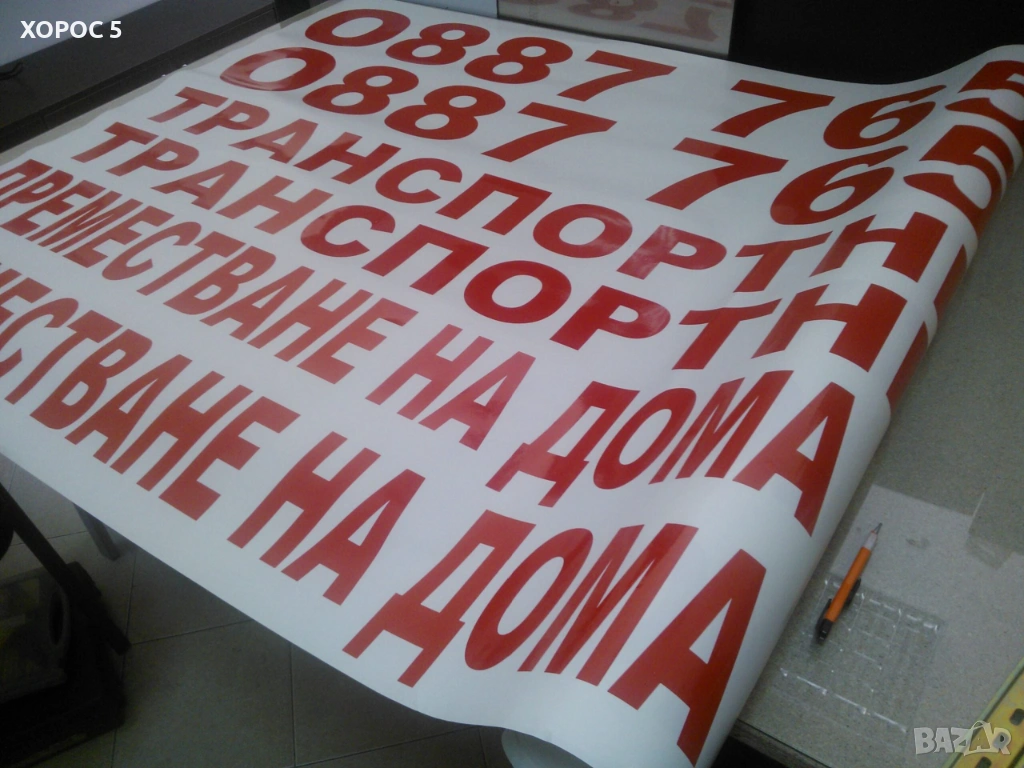 • Рязане на фолио: Плотерно изрязване на надписи от PVC фолио по контур. Идеално за стикери, декорации и витрини.