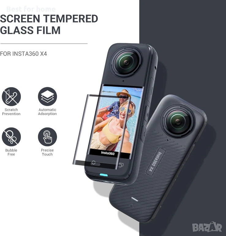 Персонализиран протектор за екран за Insta360 X5: Проектиран специално за вашия insta360 X5/X4, този протектор за екран предлага прецизно прилягане. Той пасва безпроблемно на екрана, осигурявайки пълно покритие и максимална защита, без да възпрепятства функционалността на камерата.