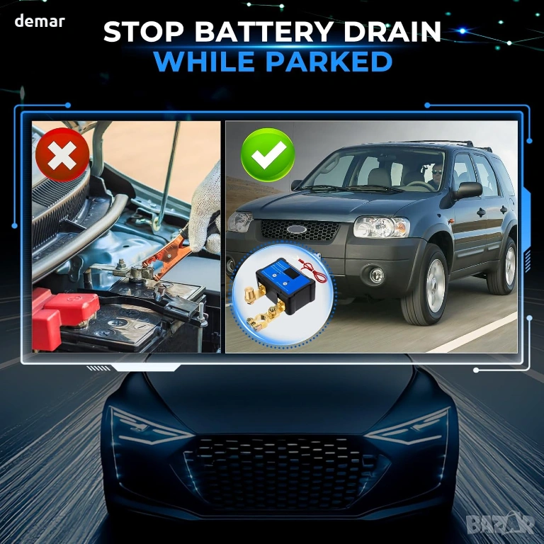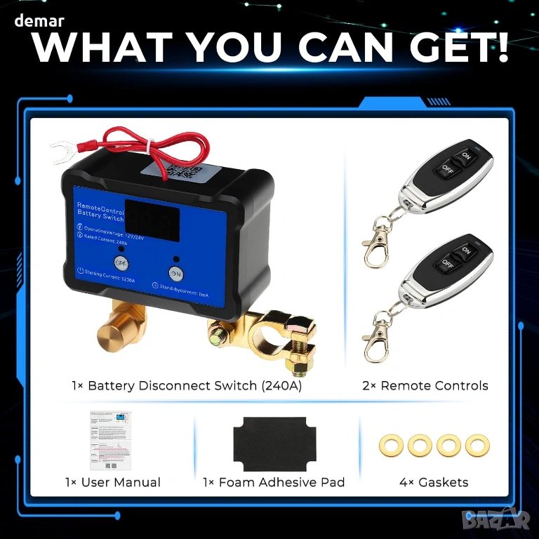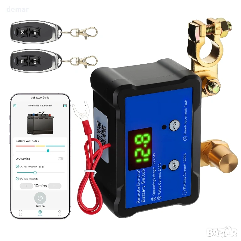 GEARCELL прекъсвач за автомобилен акумулатор, приложение и дистанционно