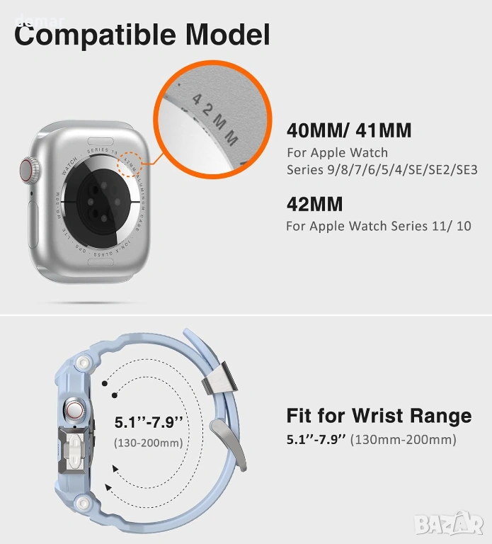 Съвместима с Apple Watch Series 11/10 (42 мм) и подходяща за размери на китката 130–200 мм, тази каишка е с интегриран дизайн на каишката и корпуса за пълна защита от удари и надрасквания, като същевременно се поддържа лесен достъп до бутоните и дигиталната коронка. Изработена от подсилен TPU с метален безел и катарама, тя предлага леко, приятно за кожата усещане с изискан вид. Минималистичният дизайн и меките цветови тонове Morandi подхождат на различни ежедневни поводи и личен стил, което я прави практичен и обмислен вариант за подарък за събития като рождени дни, празници или специални тържества.