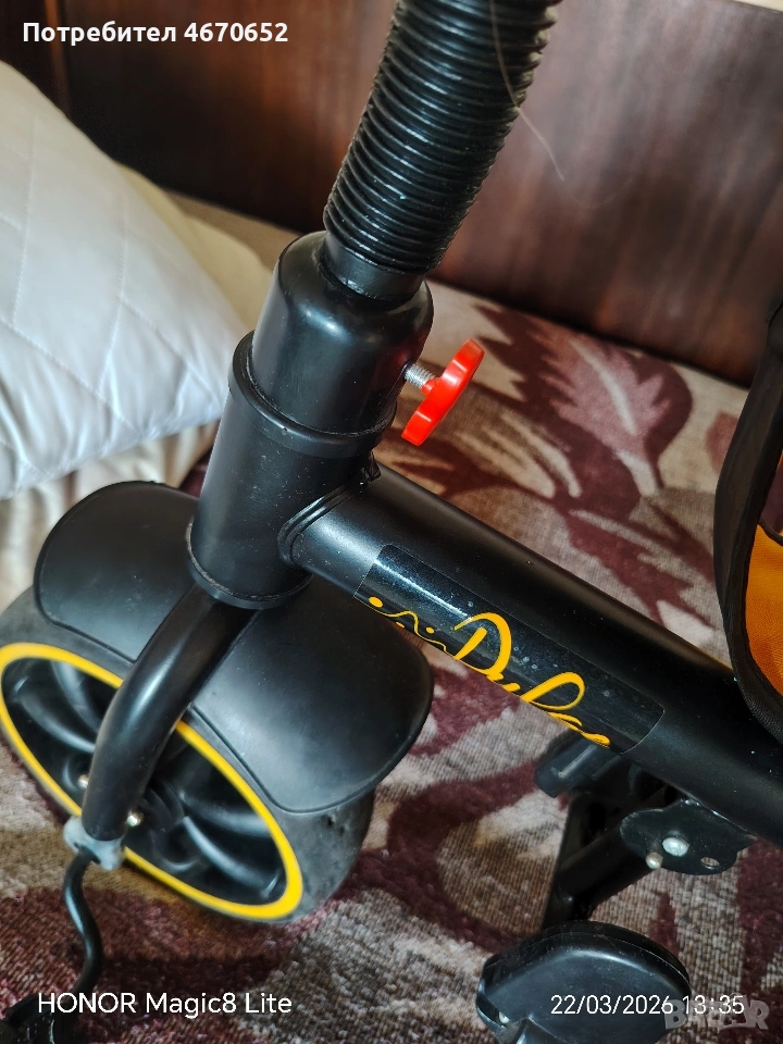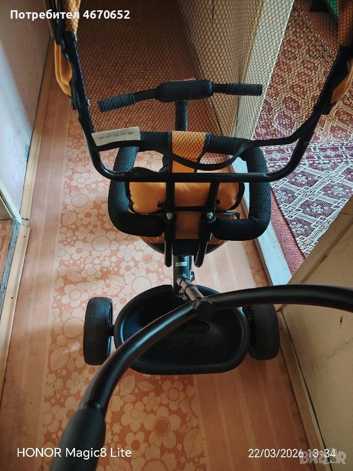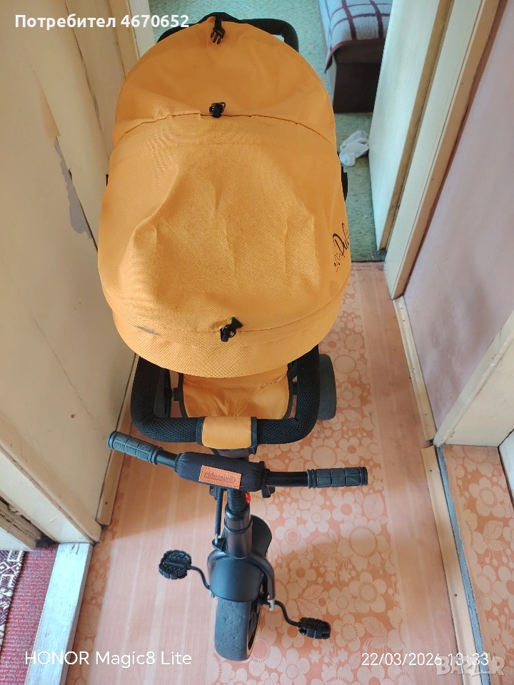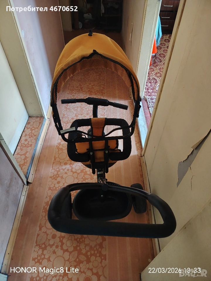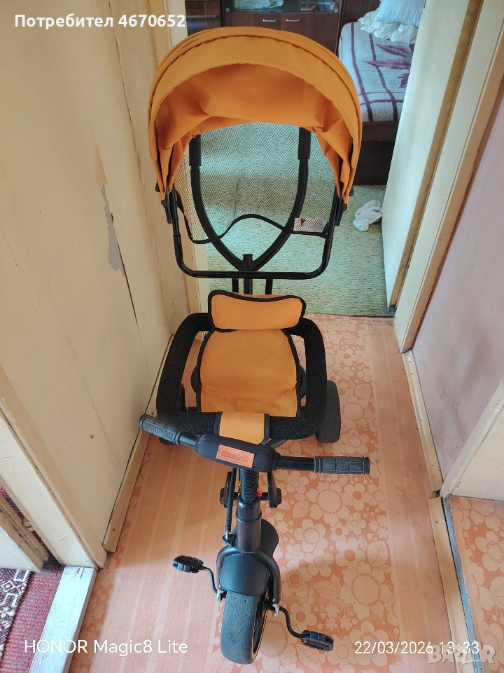 Триколката е използвана, в много добро състояние. Може да се разглоби и да стане само колело за каране.Последната снимка на колелото е взета от интернет,тъй като триколката не е разглобена, но колелото е същото. Изпращам по Еконт.