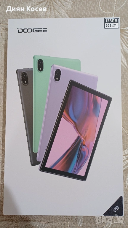 DOOGEE U10 таблет с размер на екрана 10.1 инча и оперативна памет 4GB, вградена памет 128GB, работещ под Android операционна система. Нов, в отлично състояние.
