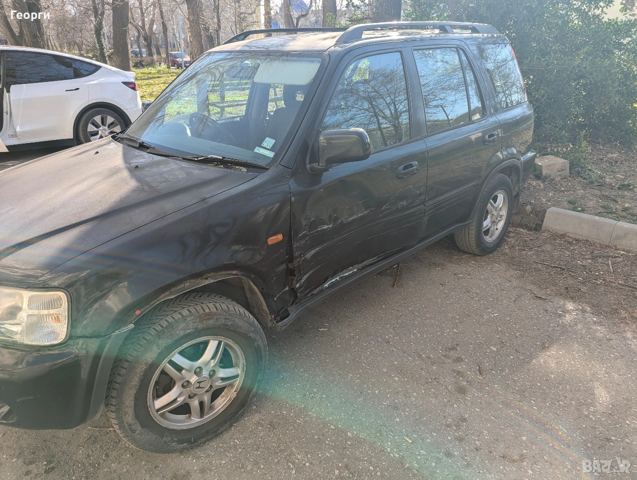 Honda CR-V 2. 0 Бензин/Газ (150 к. с. ) - 2001 г. | Отлично поддържана # Основни характеристики: # Година на производство: 2001 г. # Пробег: 230 000 км # Двигател: Бензин (150 к. с. ) + Газова уредба # Цвят: Черен # Собственост: 2-ри собственик # Дирекция: Десен волан # Описание на автомобила: Продавам много запазена и гледана Honda CR-V. Автомобилът е каран от пенсионер, като винаги е шофиран внимателно и поддържан безкомпромисно. Маслото и всички филтри са сменяни абсолютно редовно. Двигателят работи тихо и равномерно, а ходовата част е стегната. Колата разполага с газова уредба, като бутилката е монтирана на мястото на резервната гума така багажникът остава напълно свободен и използваем. Изключително икономична и практична за града и извън него. Екстри и предимства: Работещ климатик Шибедах (люк) Почти нови всесезонни гуми колата е готова за каране през всички сезони без нужда от допълнителни инвестиции за гуми. Просторен интериор и голям багажник. Забележки: Автомобилът има лек козметичен дефект удар по шофьорската врата, който ясно се вижда на снимките. Забележката е съобразена с цената и по никакъв начин не пречи на затварянето или нормалната експлоатация на колата. Автомобилът си заслужава да се види! За повече информация и уговорка за оглед, моля, обадете се на посочения телефон.