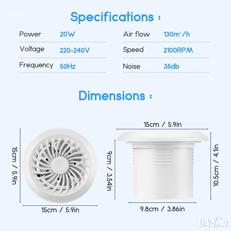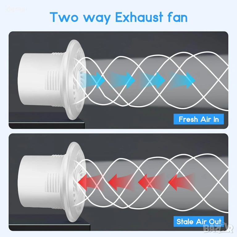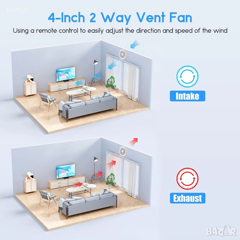 Този 100-милиметров двупосочен вентилатор за изсмукване поддържа както режим на всмукване, така и режим на изсмукване, като ефективно премахва влага, миризми и застоял въздух или вкарва свеж въздух, когато е необходимо. Той разполага с три регулируеми настройки на скоростта с дистанционно управление и функция за памет, която възстановява предишните настройки при рестартиране. Проектиран за лесен монтаж, той включва стандартен 4-инчов размер на канала и компактен панел. Изработен от издръжлив ABS материал с противопрахова мрежеста преграда, той предлага надеждна, тиха работа и безопасна работа със защита от прегряване и водоустойчивост IPX4. Подходящ за широк спектър от пространства, включително бани, кухни, гаражи и офиси, той осигурява ефективна и тиха вентилация.