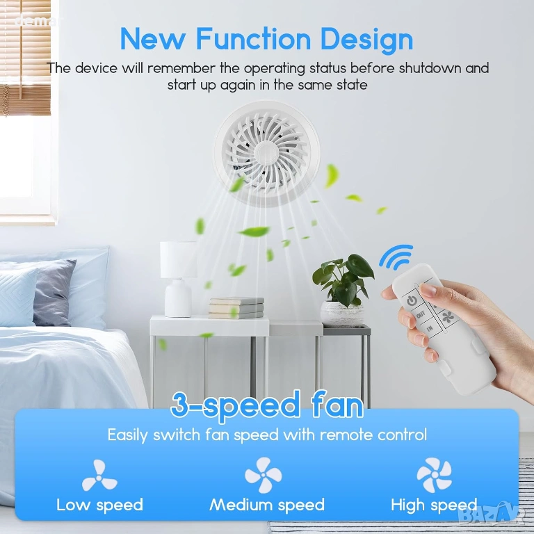 Двупосочен вентилатор, Ø 100 мм вентилатор с 3 скорости и дистанционно