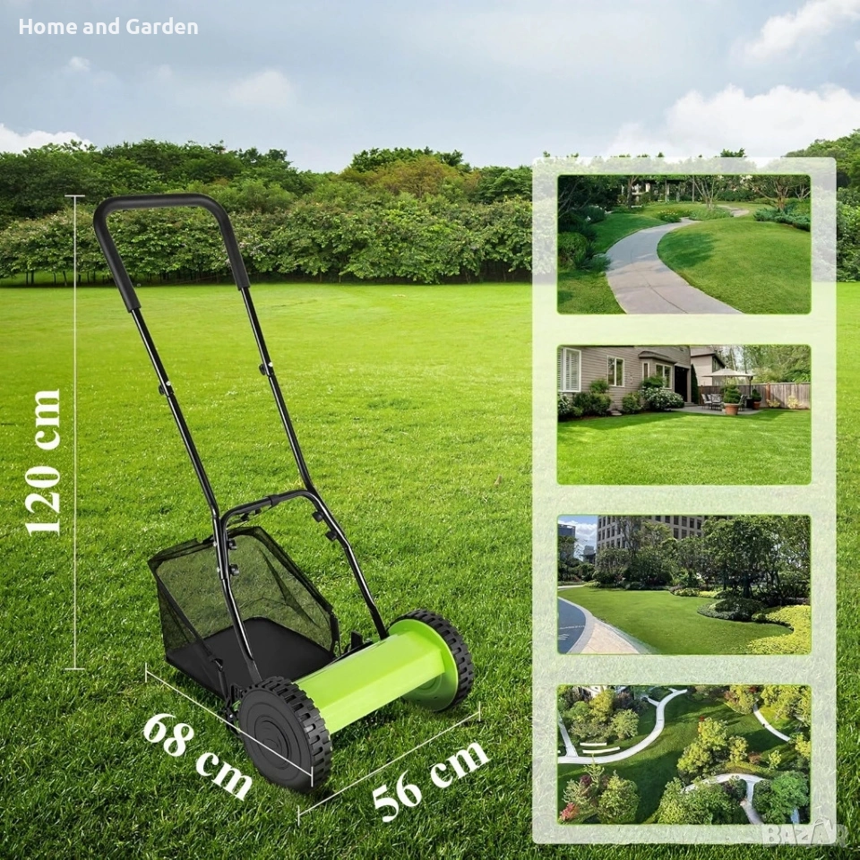 Ръчна косачка за трева с кош – 40 см, 5 остриета