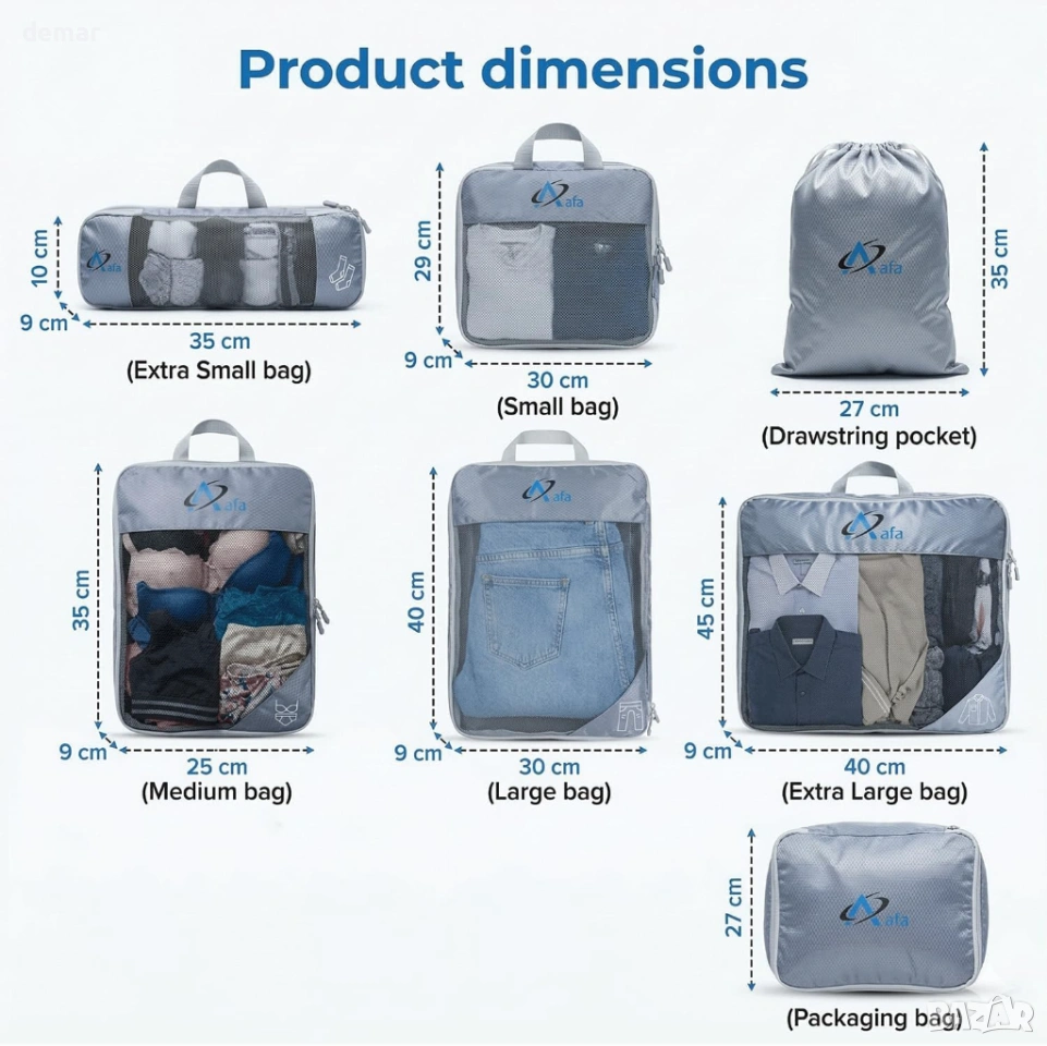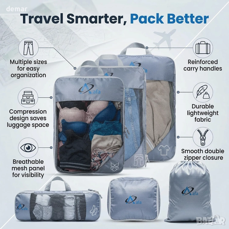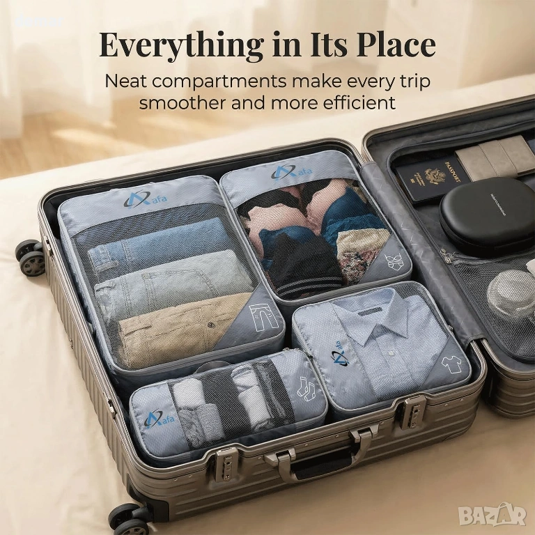 Компресионни опаковъчни кубчета Aafa за куфари, комплект от 7 ултралеки опаковъчни кубчета