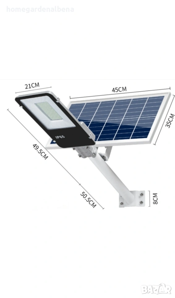 Професионална соларна лампа с висока яркост и пълна защита от дъжд и прах. Идеална за улици, дворове, паркинги, складове и всякакви външни пространства – без електрически разходи!