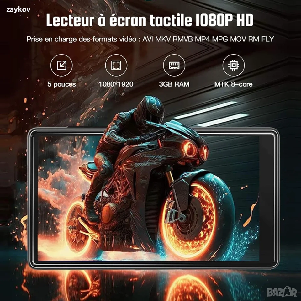 Превъзходно визуално изживяване --- 5.0-инчовият IPS сензорен екран осигурява изключително визуално изживяване. С 1080P HD резолюция, всеки детайл от любимите ви филми, видеоклипове и снимки ще бъде ясен и реалистичен. Видео форматите са съвместими с AVI, MKV, RMVB, MP4, MPG, MOV, FLV, RM и др. и няма нужда да ги конвертирате за директно възпроизвеждане.