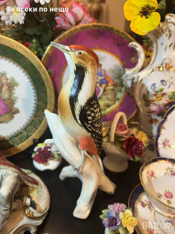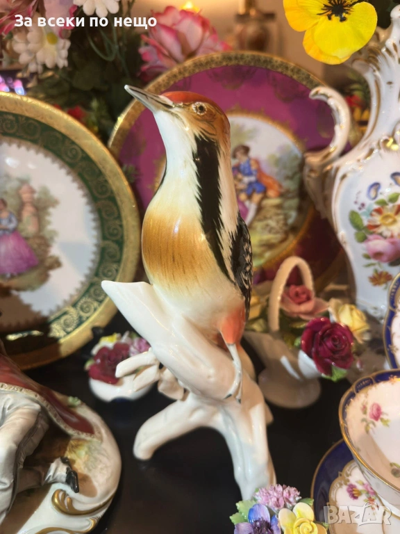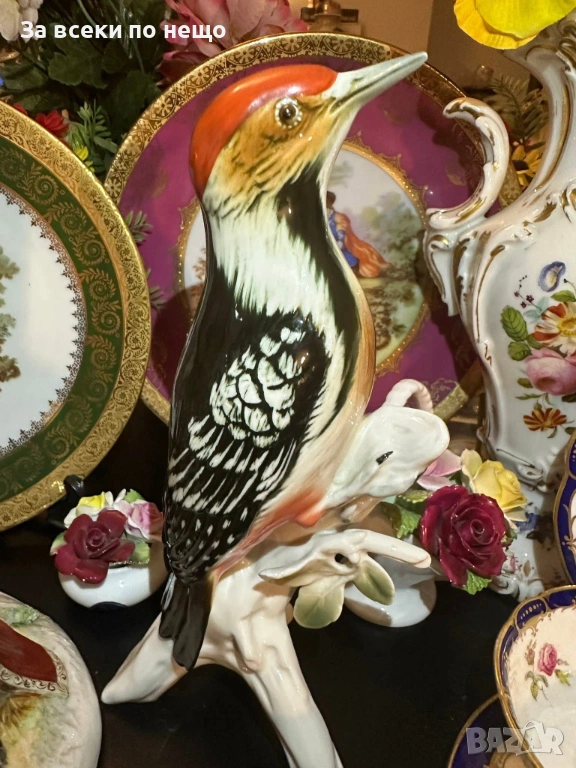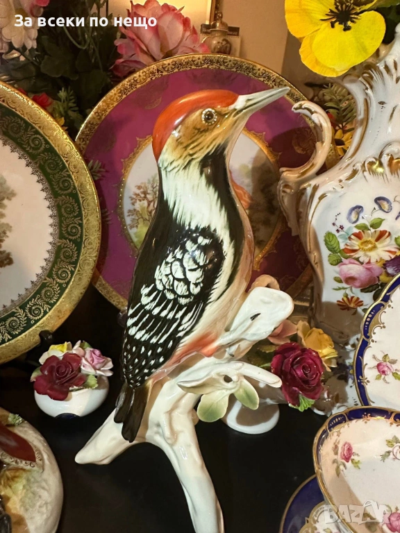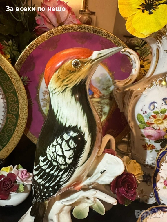 Karl Ens Germany след 1945 “ Кълвачът” изящество и поклон пред Твореца за това прекрасни създание и майсторите на тази великолепна порцеланова птица, реалистично моделирана и красиво ръчно нарисувана с неотразима прелест и финес, грандиозна и величествена с размери около 25 см, отлично качество и състояние . Просто една немска приказка.