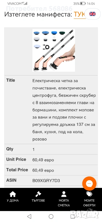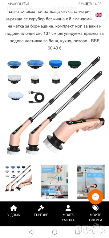 Акумулаторна четка за почистване на баня, кухня, плочки, под, фуги и др.С телескопичен прът 137см и 8 накрайника.Цената е много под реалната.