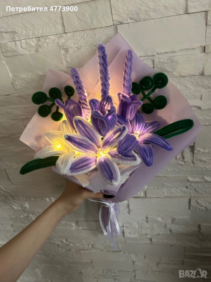 Ръчно направен букет с лампички , снимка 1 - Изкуствени цветя - 53935517 Ръчно направен букет с лампички , снимка 2 - Изкуствени цветя - 53935517 Ръчно направен букет с лампички , снимка 3 - Изкуствени цветя - 53935517 1/3