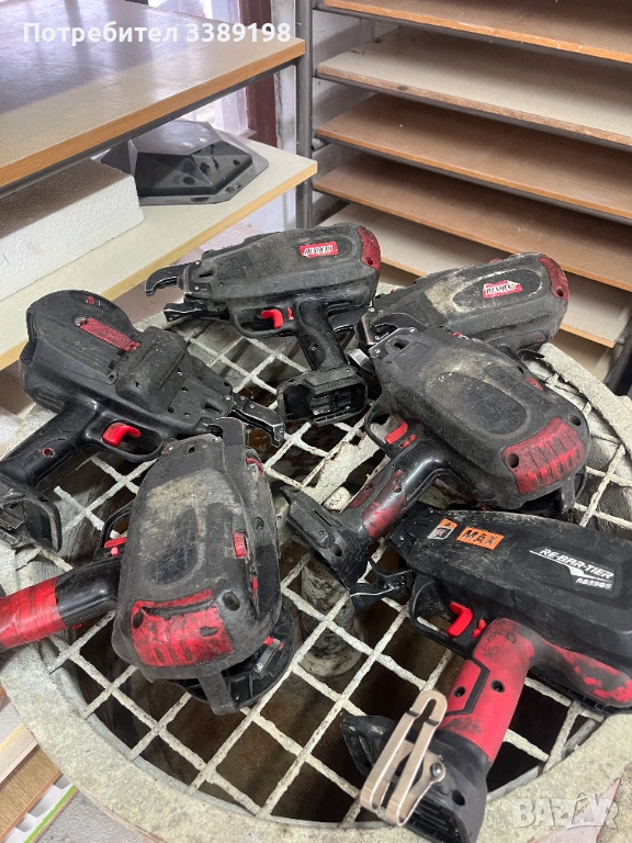 Пистолети за армировка (арматура) Max Rebar 398 използвани,но в добро работно състояние,цената е за брой,със зарядно и батерия.Цената на нов пистолет е около 2500 Евро!