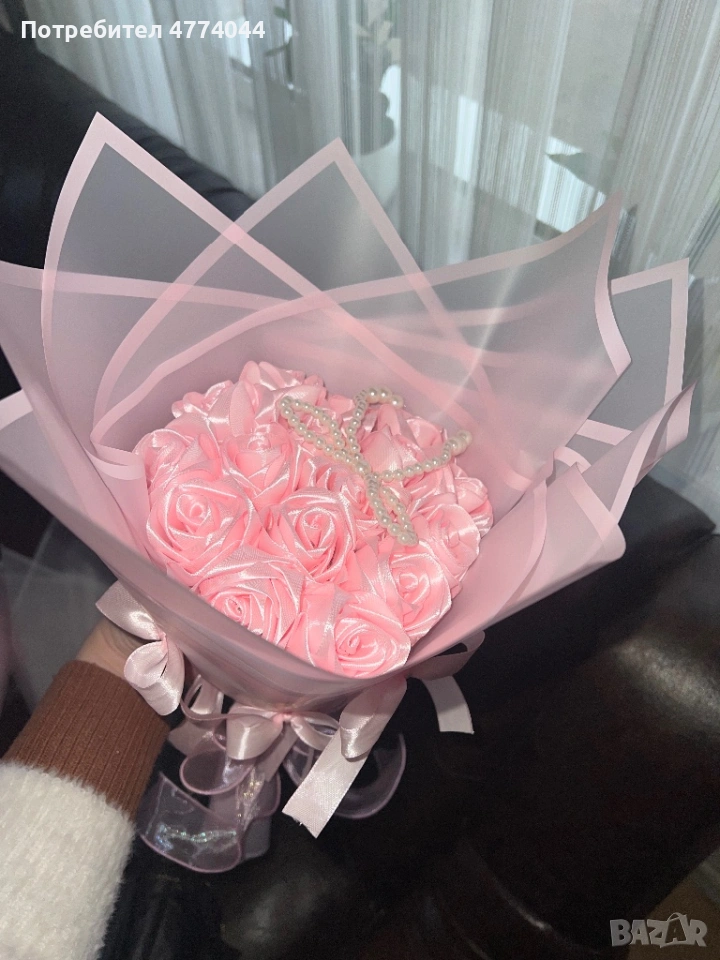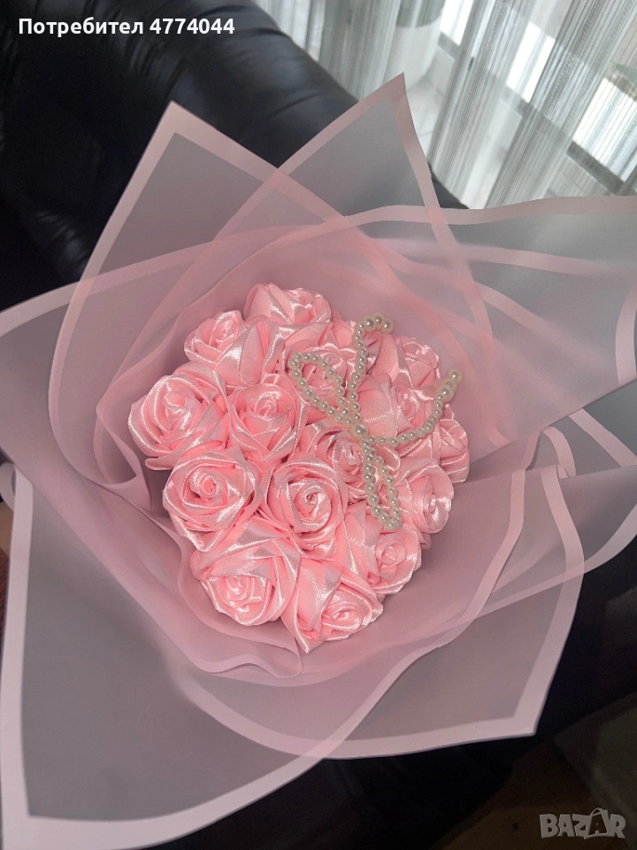 🌹 Предлагам ръчно изработени букети от сатенени рози ✨ Много красиви и елегантни – идеални за подар → Обява 53935854