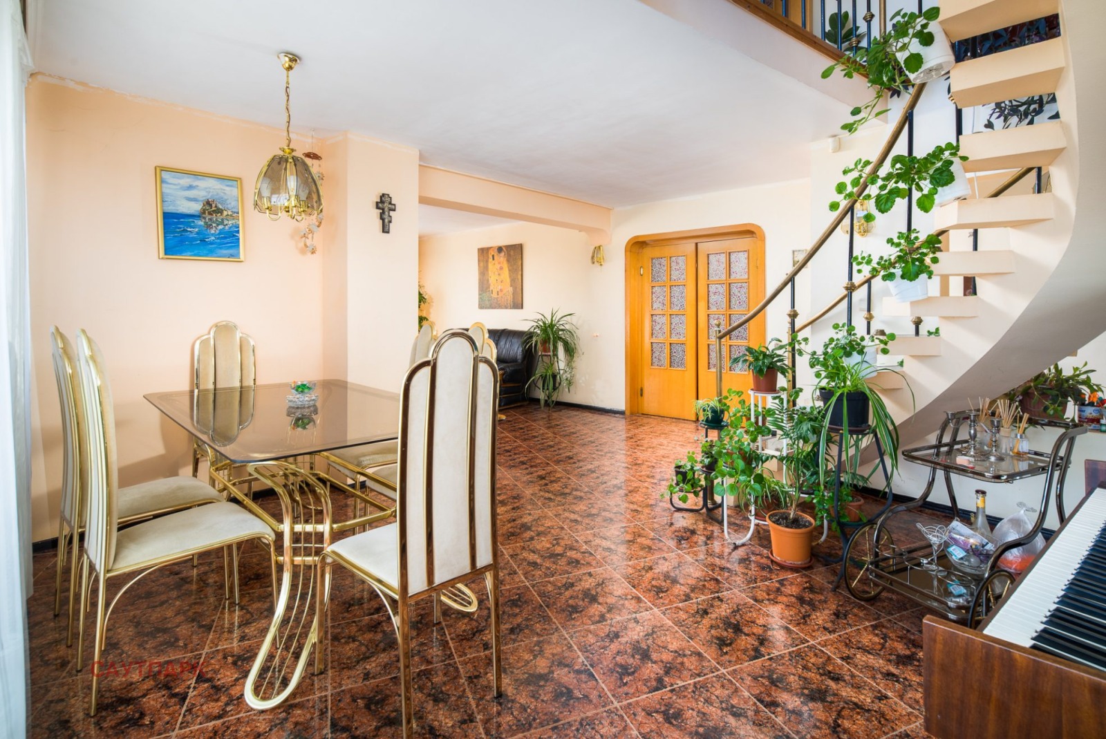 Ако искате тишина и спокойствие, но все пак желаете бърз и лесен достъп до Центъра, голям хранителен магазин в непосредствена близост (Billa), добре поддържани детски площадки, множество транспортни връзки, Вие трябва да видите това жилище. Разположено на две нива: първо ниво: антре, кухня, трапезария, просторен хол, баня и тоалетна, голяма тераса с невероятна гледка към Витоша; второ ниво: две спални, две бани, две тераси. ЗП на жилището без общите части е 187.80 кв.м. Жилището се предлага, с или без обзавеждане, в зависимост от нуждите на бъдещия купувач. Отоплението е на ток, но има и действаща камина. Сградата е без асансьор.
