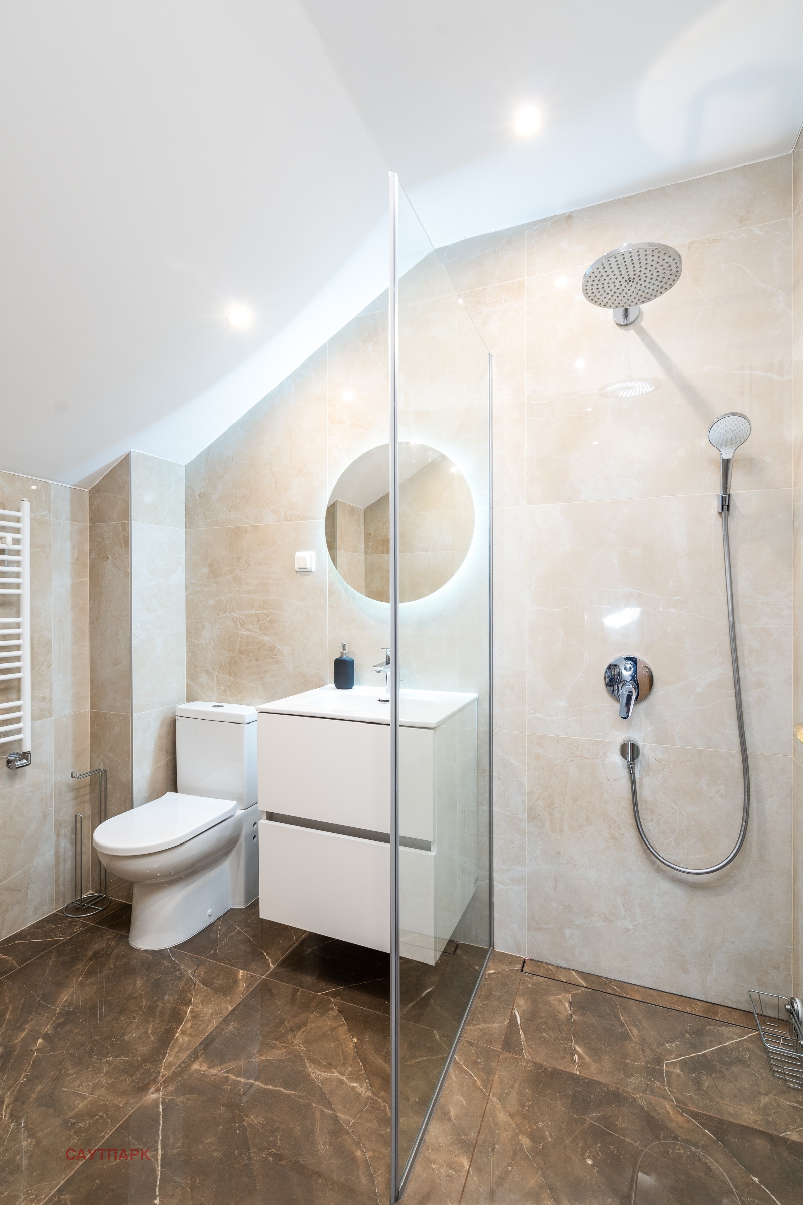 Имотът е на две нива. Обзаведен е стилно с класически мебели. Настилките са от висококачествен паркет. Кухнята е напълно оборудвана.